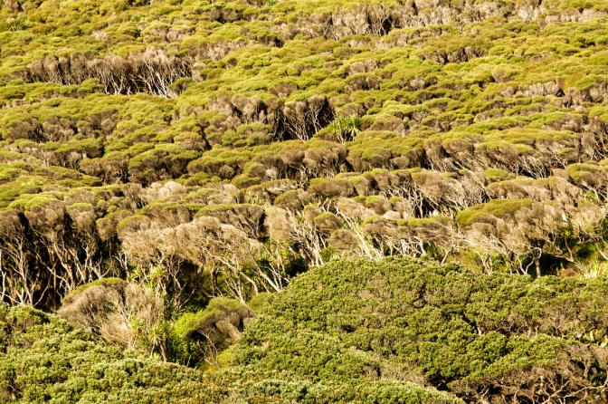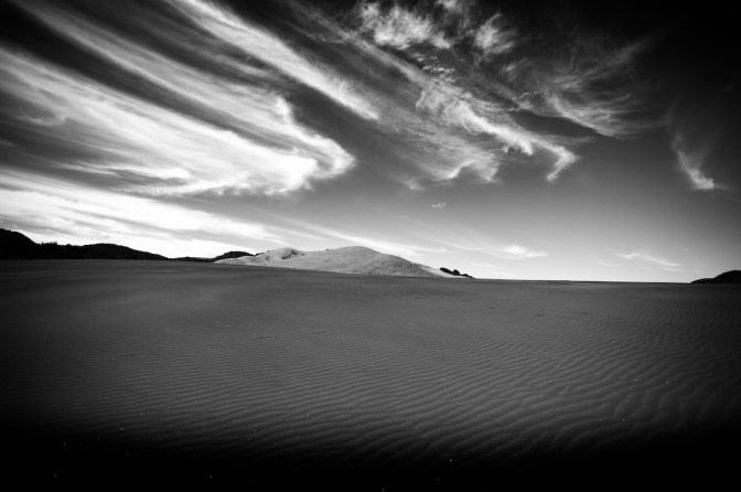 In the upcoming film of Peter Jackson’s “The Hobbit”, trolls will feature significantly. This is the kind of home they’d kill for.The hills around Bethells, and much of the west coast, are covered in Manuka trees, often looking like they have been brushed by the wind, which they have. Manuka wood is often used in New Zealand to smoke produce, like salmon or pork, and it imparts a marvelous flavour. While the flowers of the tree make a very special honey, renowned for its medicinal properties.Behind Bethells, alongside a river valley, are some spectacular sand dunes.