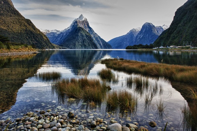 On May 17th, when I decided to post a photo a day (fallen off a bit), I wrote about the road to Milford Sound in the post “Dawn Road”. It is one of the world’s great road trips, and takes about two hours from the town of Te Anau, if you don’t stop too often for photographs. Difficult. At the end of this unspoilt and magnificent drive you descend to Milford Sound through mountains which rise impossibly steeply on either side to a sight which, well, takes the breath away. Early morning is best, like the photo above, when the water is still and glasslike. But the solitude amidst the natural splendour you’ve enjoyed thus far is rudely shattered by the sudden proximity of tour buses and hundreds of tourists preparing for their cruise of the sound in one of the many boats on offer — it is New Zealand’s most famous attraction, after all. However, this doesn’t really detract as the experience of just being in such an incredible place more than makes up for the sudden inconvenience of early morning queuing with many humans for one’s berth on a boat. The mountain in the centre is called Mitre Peak. I’ll post more photos from this trip in due course, but have started with this one as it is one of my most popular on other forums, like Flickr and 500px.
