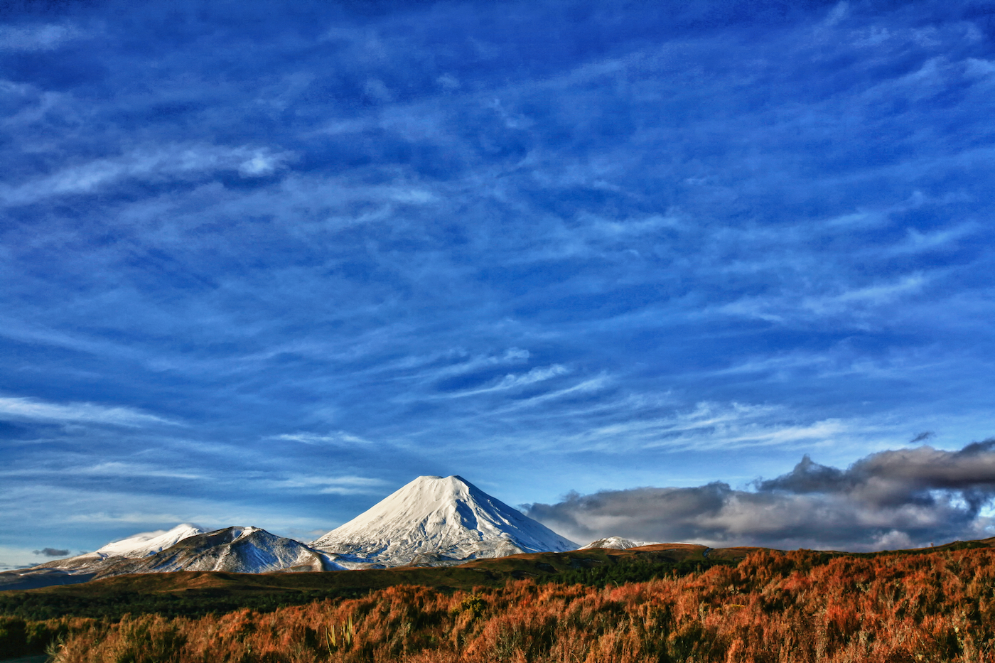 No, I wasn’t there or have photos of last night’s Tongariro eruption, the first in over 100 years. This photo is the next best thing and was taken a few years ago showing the Tongariro volcanic system. The beautiful cone to the right is Mount Ngauruhoe (pronouced Nara-ho-ee) and it’s actually a relatively new vent of the main Tongariro volcano, which is the entire area on the left. Tongariro was once bigger than Mt Ruapehu (out of shot), which itself is bigger than Mt Ngauruhoe, but Tongariro blew up yonks ago leaving what we see today. Last night’s eruption at 11.50pm hurled rocks 1 km away and sent up an ash cloud that has disrupted local air traffic. Experts say they don’t know how long the volcanic activity will last; could be months, days, decades! A more violent eruption in the coming days or a drop off in all volcanic activity was also possible, it’s reported. White Island to the east in the Bay of Plenty, on the same volcanic fault line which runs west to Taupo, Tongariro and Mt Taranaki in New Plymouth, also blew the other day. Given the massive volcanic cauldron on which the central North Island sits, any activity is potentially disturbing. Taupo, a few miles east of here, was the largest eruption in the history of the earth, that we know of; something that made the Mount St Helens eruption look like a minor fart. Food for thought. The volcanic alert level for Mt Tongariro has risen from 1 to 2, while the aviation colour code has been raised to red.
