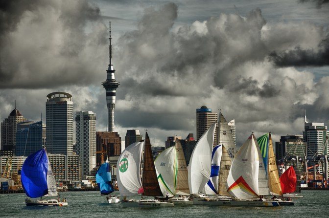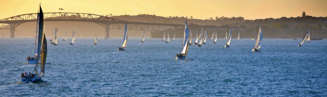 Auckland is known as The City of Sails and if you spend any time here you’ll soon see why. There are boats and yachts of every conceivable shape and size to be found all over our fair city, from expensive berths in grand marinas to those parked up behind the family car in any number of suburban driveways. It is said that one-in-four Aucklanders owns a boat. It’s no coincidence, I suppose, that all our gold medals bar one in the London Olympics were won on the water. The biggest sporting event in New Zealand after the Rugby World Cup is the America’s Cup, which we’ve also won, of course. Take a drive along the coastline of Auckland’s North Shore or any stretch of road bordering the Waitemata Harbour and Hauraki Gulf and you will see sails of some kind billowing in the breeze, lots of them. I see them everyday form the deck of my home, regattas, flotillas, lonely specks on the ocean. Last weekend I saw Team New Zealand practising for the Americas Cup in their giant catamaran with its vast red sail. The picture above was taken in Devonport looking towards the city. I had no idea there was race on that day, just good luck and great light. The photo below was taken from a ferry heading into port near the Harbour Bridge. There wasn’t a race on; rather, it was a typical day on the Waitemata when the wind is up. Magnificent.