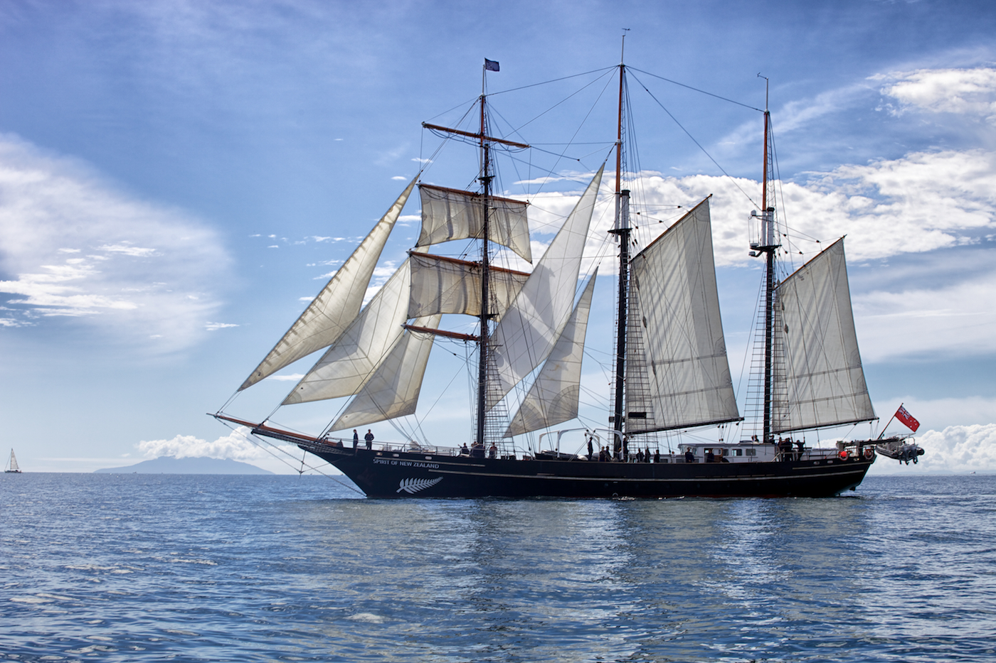 It’s a fantastic sight, a tall ship in full sail on the horizon. We sped towards it in our little boat, thoughts of fishing suspended in favour of really getting close-up. No pirate ship this but a magnificent modern vessel whose name speaks volumes about our adopted homeland and its maritime history and traditions. The Spirit of New Zealand is manned by young people who are sent on board to develop “qualities of leadership, independence and community spirit through the medium of the sea”. The ship is a “three-masted barquentine” and was commissioned in 1986. It carries 14 crew and 40 trainees. The Spirit of Adventure Trust say that she is “believed to be probably the world’s busiest youth ship” and is expected to be able to continue operating youth voyages until around 2035. A day out fishing on Auckland’s Hauraki Gulf is always special, but when you run across a sight like this it becomes truly memorable.