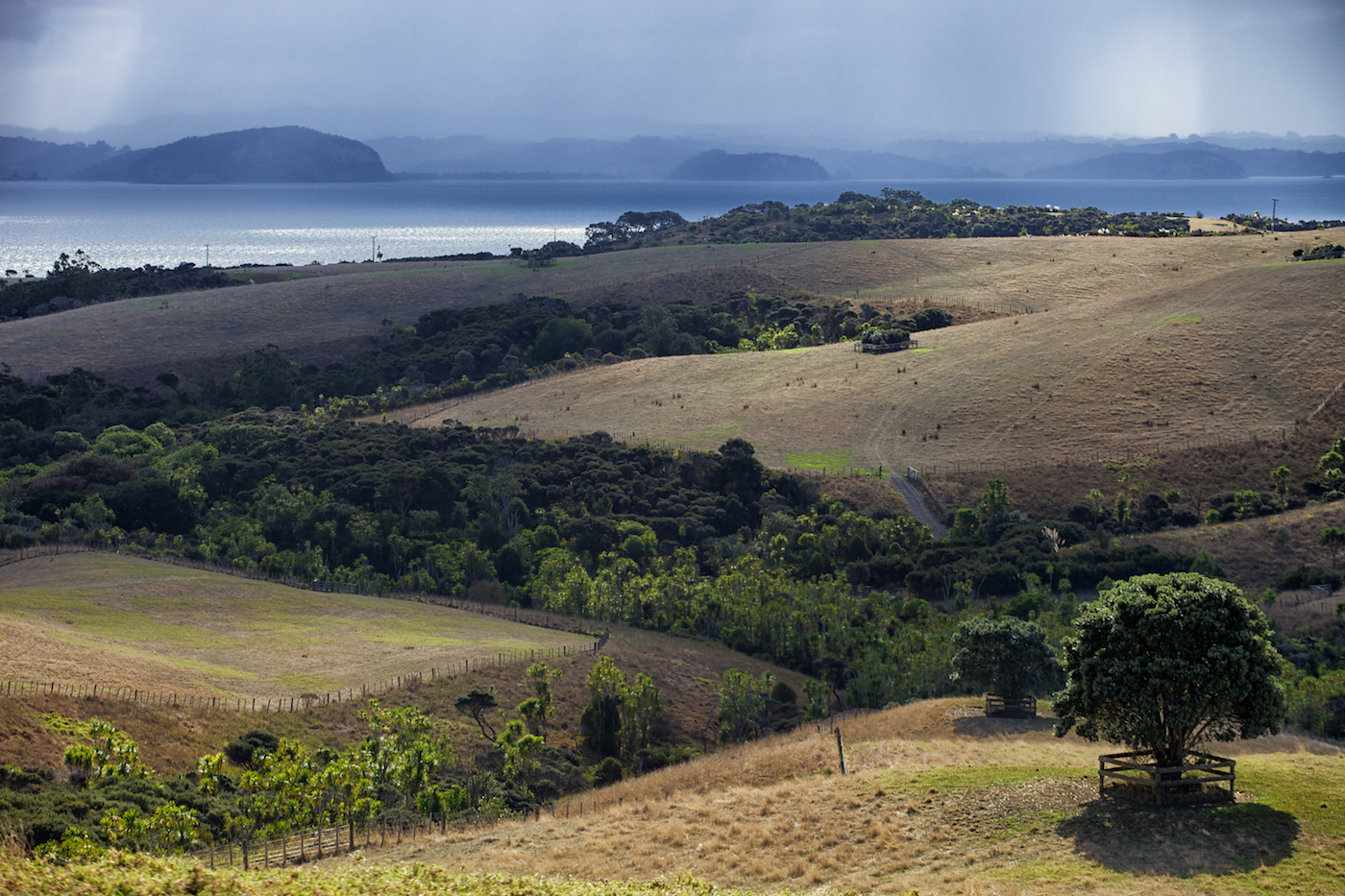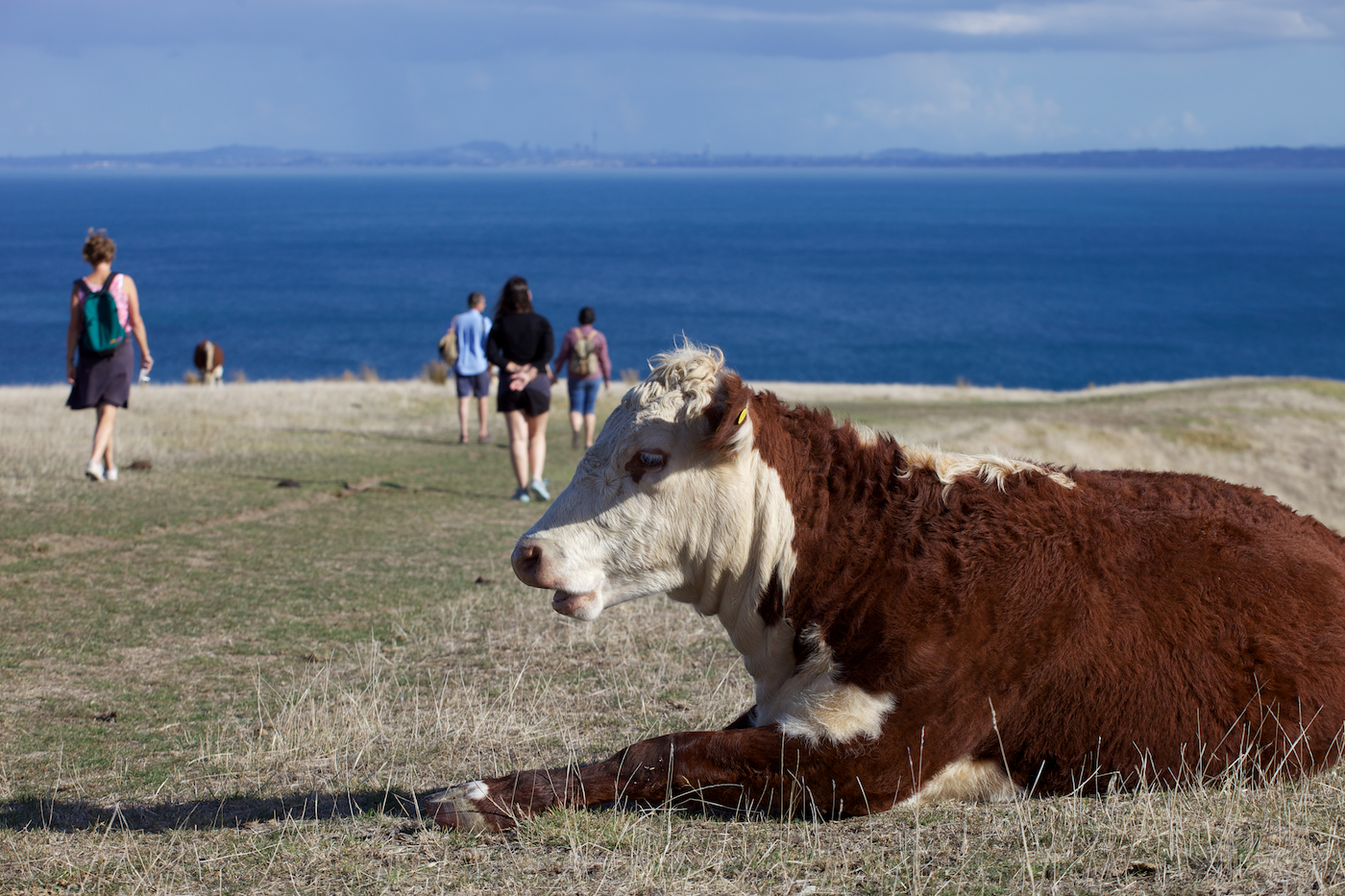 At the latest count we have 35 regional parks in the Auckland region, most of them set in glorious countryside along the coast. When it comes to walking, hiking, swimming, running, surfing, mountain biking, hang gliding, picnicking —we are spoilt for choice. Every year thousands of Auckland schoolchildren spend educational days, sometimes camping overnight, in the parks learning about the value of an unspoilt, well maintained environment and the simple beauty of nature. Future custodians undergoing early training. It’s a truly invigorating thing to recharge one’s batteries in such places. A couple of weeks ago we took some visitors from England on a walk over the hills of Shakespear Regional Park on the Whangaparoa Peninusla. I haven’t spelt Shakespear wrong, it’s the name of the man who once owned the land. Like many of our regional parks, areas of Shakespear remain part of a working farm, bought and run by the council for the enjoyment of Aucklanders and our visitors now and forever. Shakespear is one of our favourites because of the views it affords looking over the Hauraki Gulf to the city of Auckland. Over the hills, not far away.