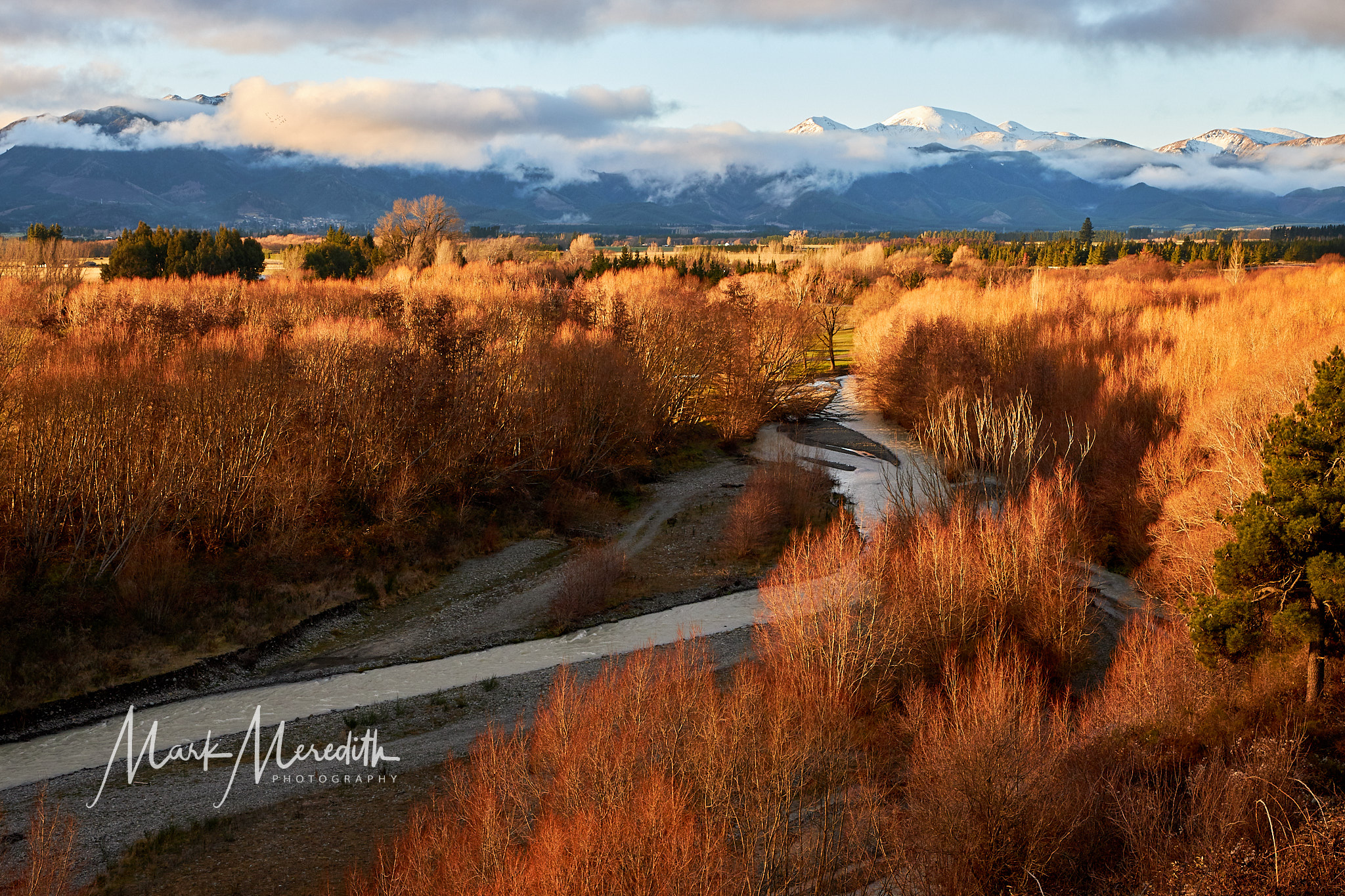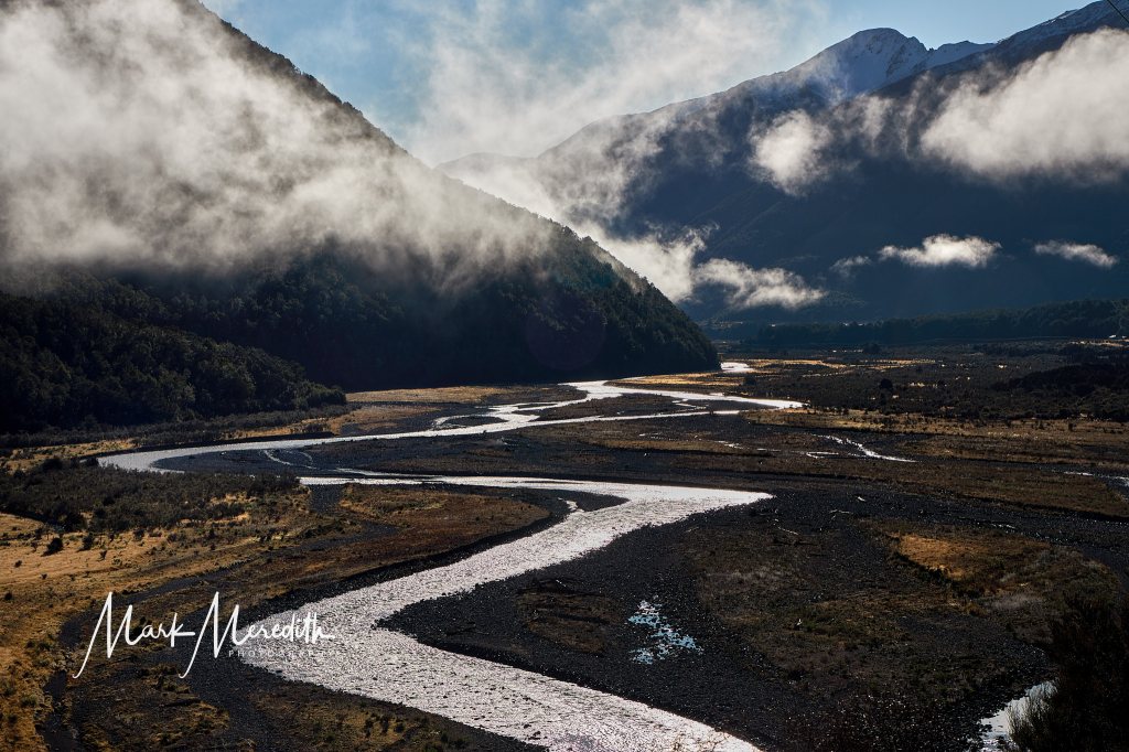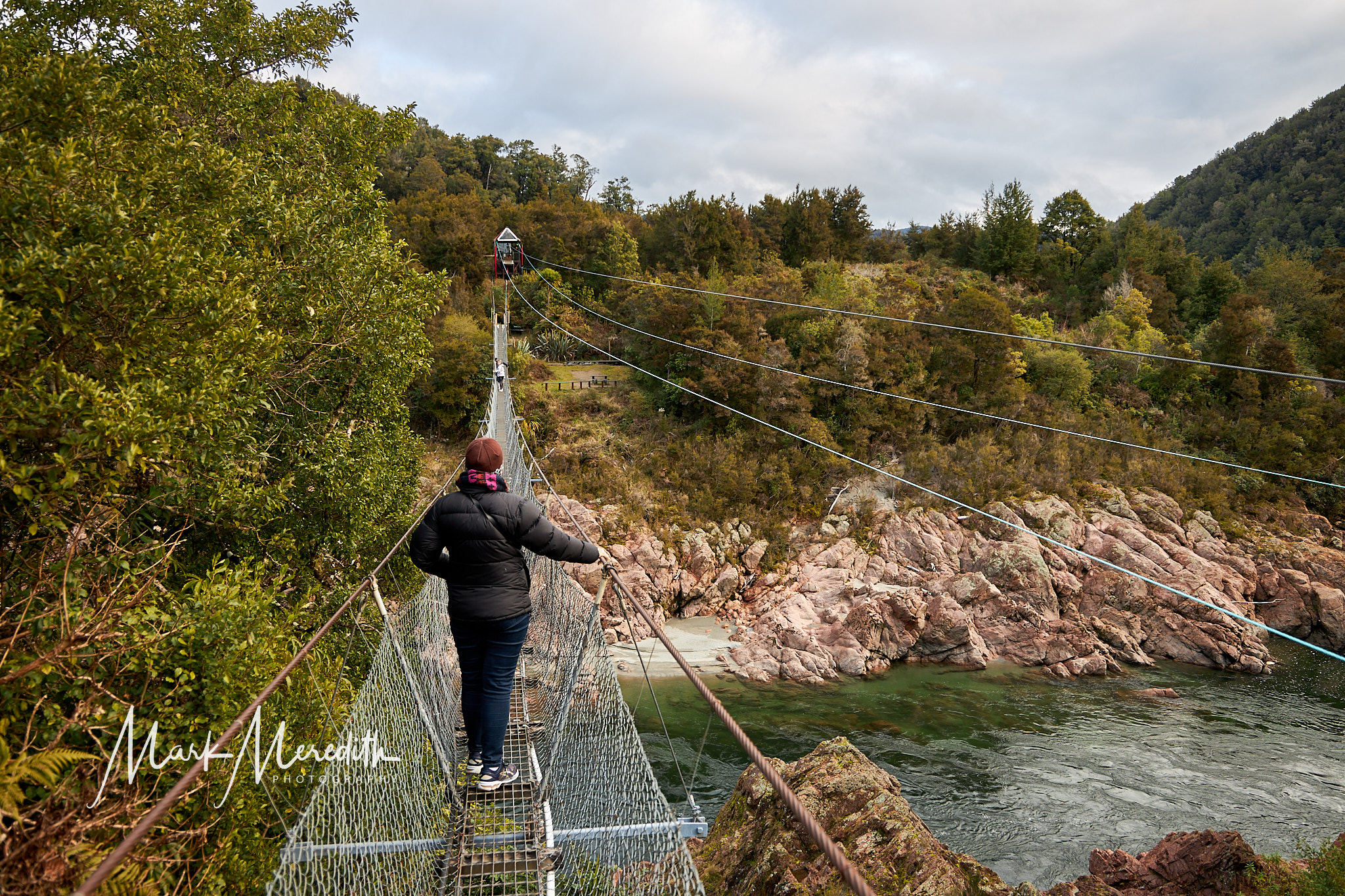 We overnighted near the rural town of Murchison and I sent my wife to walk the longest swing bridge in New Zealand which straddles the mighty Buller Gorge. No way was I crossing that. She zip-lined back. On our route back east we stopped at nearby Maruia Falls. I can’t resist waterfall photos and set up my tripod in drizzling rain. By now the weather was closing in as we crossed the Lewis Pass over the Southern Alps, most of the breathtaking scenery hidden from us in low cloud and sleet.