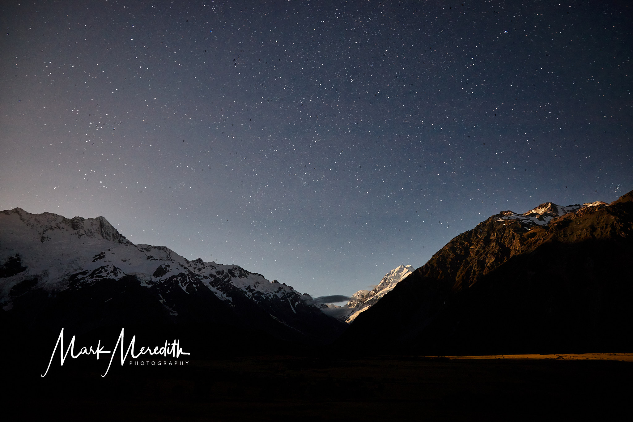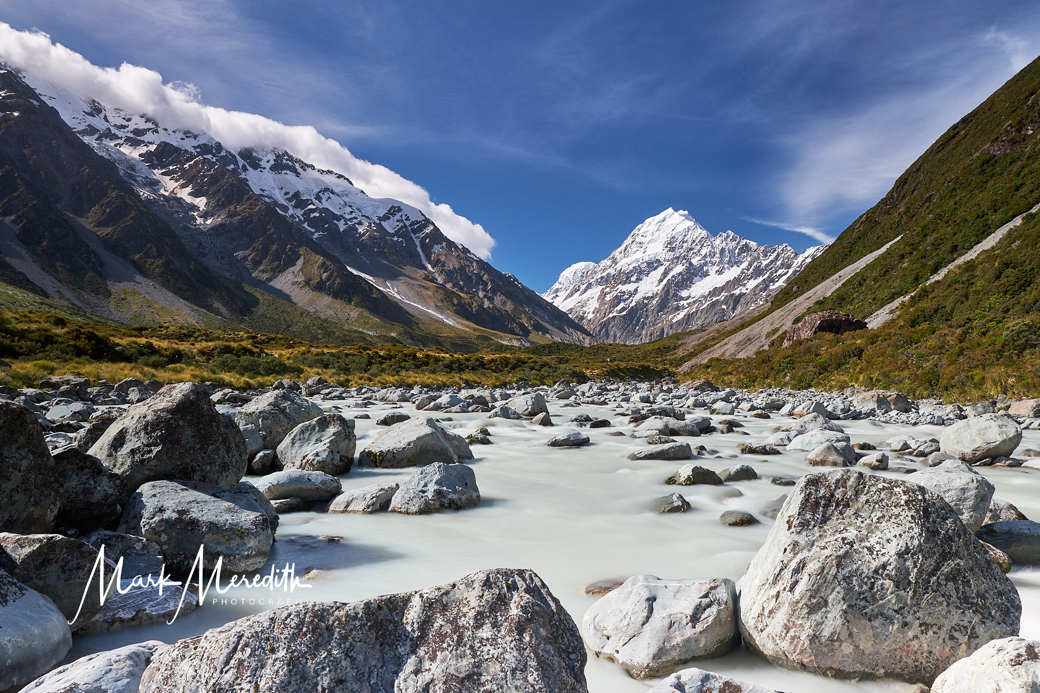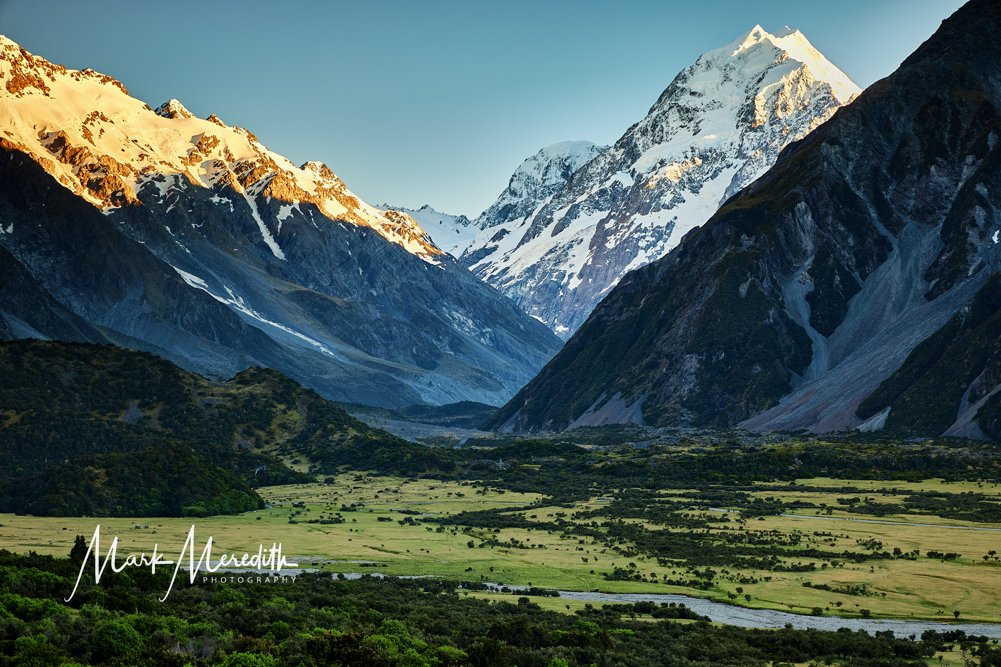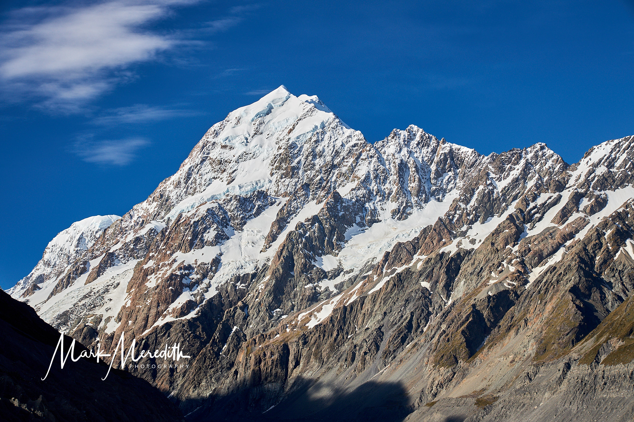 The glacier trip was part two of a long, tiring day that would include a 10km trek. I had been up before sunrise on the balcony of our 6th floor room to take dawn photos of the mountain. From The Hermitage the view is straight down the Hooker Valley to Aoraki Mt Cook. The outlook from its bedrooms and dining room has to be among finest of any hotel in the world, even if the hotel itself is not the most attractive.
