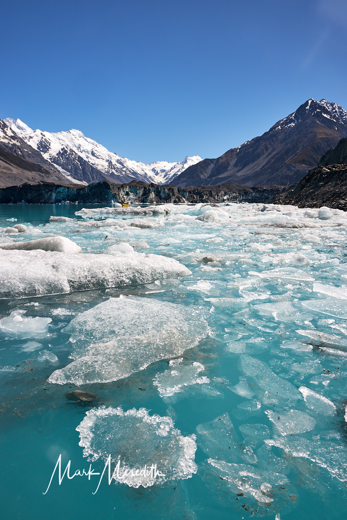 The Tasman Glacier is New Zealand’s longest, stretching for 27kms with a depth over 600m, flowing from the Southern Alps to the Mckenzie Basin. It’s one of the only lakes in the world with its own icebergs. The glacier is melting, fast. In 1973 there was no terminal lake at all, but by 2008 it was 7kms long and 200m deep.
